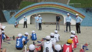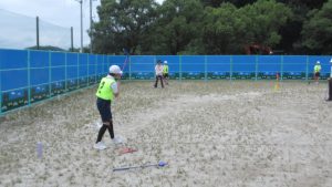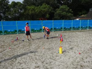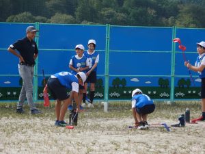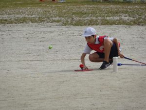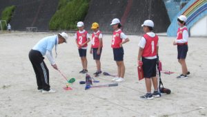 10月7日、5・6年生がスナッグゴルフ教室をしました。ゴルフの入門編として普及している、学校のグラウンドでも体験できるスナッグゴルフをしました。5ホールがグラウンドに作られて、スコアを競いました。講師の方が丁寧に教えてくださり、子どもたちは「先生」「先生」と呼んで、打ち方など聞きながら、うまく打てると「ナイス」と声があがり、失敗すると悔しがり、とても楽しく体験することができました。