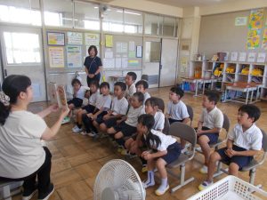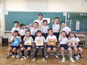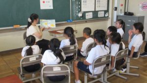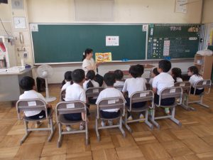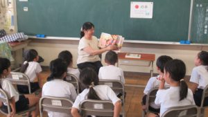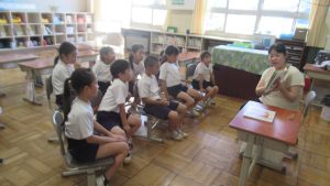 10月9日、図書司書さんによる読み聞かせをしました。今回は、2・3年生と1年生で本を読んでもらいました。「読書の秋」「食欲の秋」ということで、食べ物が題になっていたり、話の中心として登場したりする本を中心に紹介してくださいました。「パン」、「すし」、「カレー」、ハロウィンの「かぼちゃ」などが出てきました。子どもたちは、食い入るように読み聞かせに集中、楽しい時間を過ごしました。