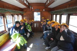 12月12日、社会見学で明治村へ6年生が出かけました。修学旅行では奈良時代の法隆寺から江戸時代の二条城まで見学していたので、江戸時代までと明治を比べて見てくることを課題として、見学に行ってきました。建物を見たり、電車に乗ったりして1日楽しみ、学習しました。
