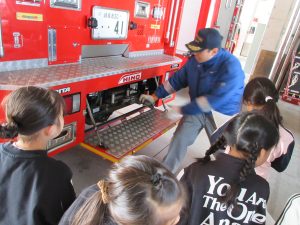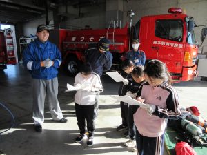 12月12日、釜戸駅から電車に乗って、2年生は市民図書館へ、3年生は消防署へ行ってきました。図書館には書庫があり、本当にたくさんの本があること、消防署では速く出動するための工夫があることなど学習してきました。