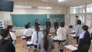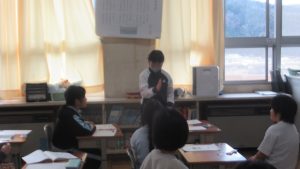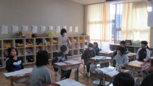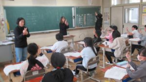1月27日、4年生が手話について学習しました。瑞浪市の手話サークル「あすなろ」の方を招き、手話の基本を教えてもらいました。最後には、「私の名前は◯◯◯◯です。よろしくおねがいします。」と全員が順番に手話の発表をしました。障がいについて知り、手話に興味をもつことができました。