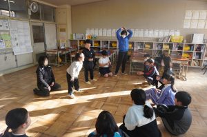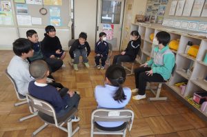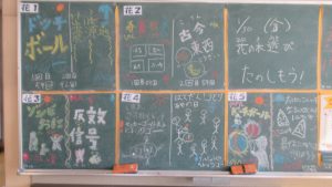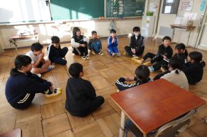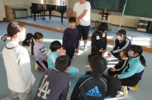 1月30日、朝活動は花の木遊び、雪がグラウンドに積もっていたので、教室での中遊びをグループごとで行いました。毎回6年生が遊びを計画しますが、外でも中でもできるように計画しています。室内でできる遊び「たけのこにょっき」や「しりとり」「古今東西」などを楽しみました。