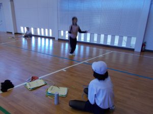 2月4日、5日、これまでのなわとびの練習の成果を試すなわとび大会をそれぞれ行いました。前とびやあやとび、二重とびなど順番にチャレンジ、自己記録が出せるよう時間いっぱいとびました。6年生の前とびでは、1000回を超える記録が出ました。