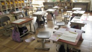 2月7日、11時にJアラートの告知放送が流れるということで、学校でもその放送にあわせて、机の下にかくれたり、窓側から離れて身をかがめたりする訓練を行いました。