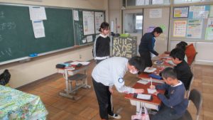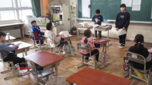 2月17日、6年生を送る会に向けて5年生が中心になって動いています。花の木グループに別れ、6年生への