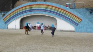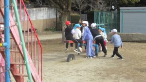 2月17日、20日、休み時間に合わせて、こども園の年長さんが遊びにやってきました。もうすぐ1年生になるので、学校の雰囲気を感じに来ました。1年生と一緒におにごっこをしたり、6年生が年長さんを誘って、ドッジボールをしたりと、楽しい時間を過ごしました。
